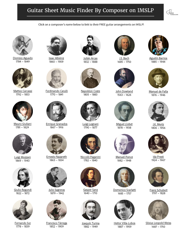 GUITAR SHEET MUSIC READING GUIDE + FREE SHEET MUSIC FINDER BY COMPOSER
